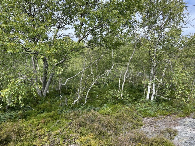 Tällainen koivikko tuo mieleen lapin. Koivut enempi vähempi kitukasvuisia ja usein melkein kuin pensaina.