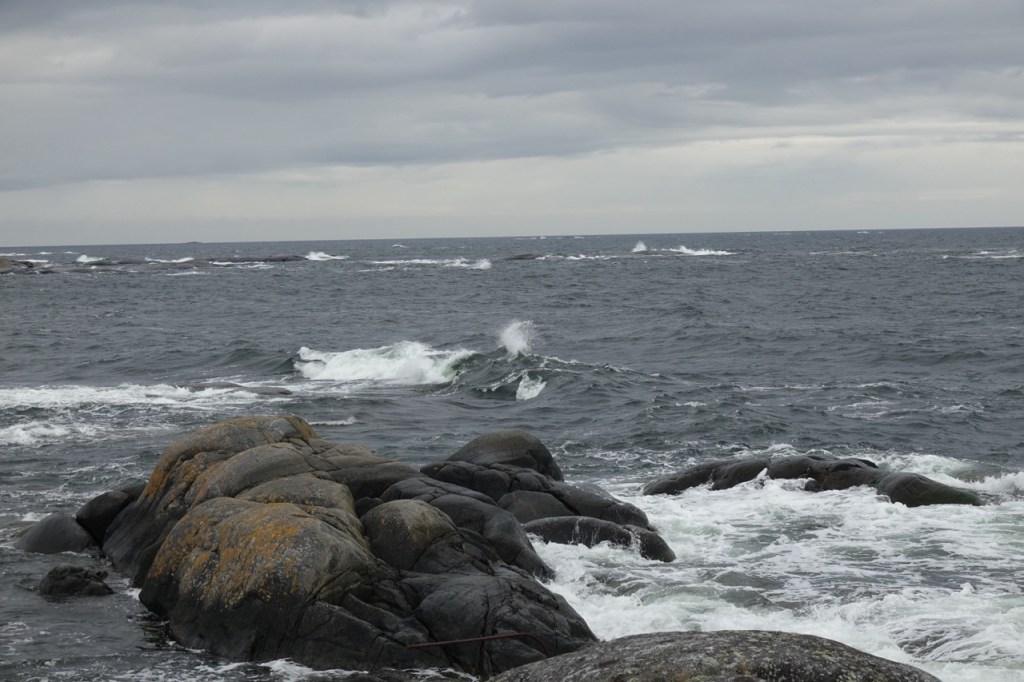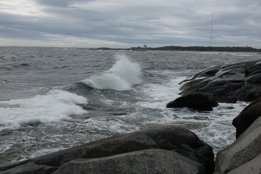 Tänään sateli pitkin päivää. Onneksi oli pieniä taukoja että pääsimme kaupassa käymään. Iltapäivällä taukosi vähän pidemmäksi aikaa, joten uskaltauduin eteläkärkeen ottamaan aaltokuvia. Nyt en uskaltanut dronea lennättä, sen verran oli navakkaa puhuria mereltä.