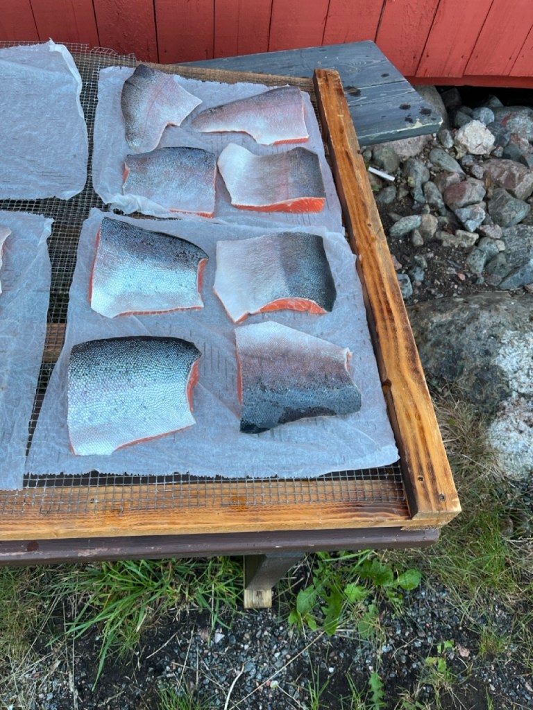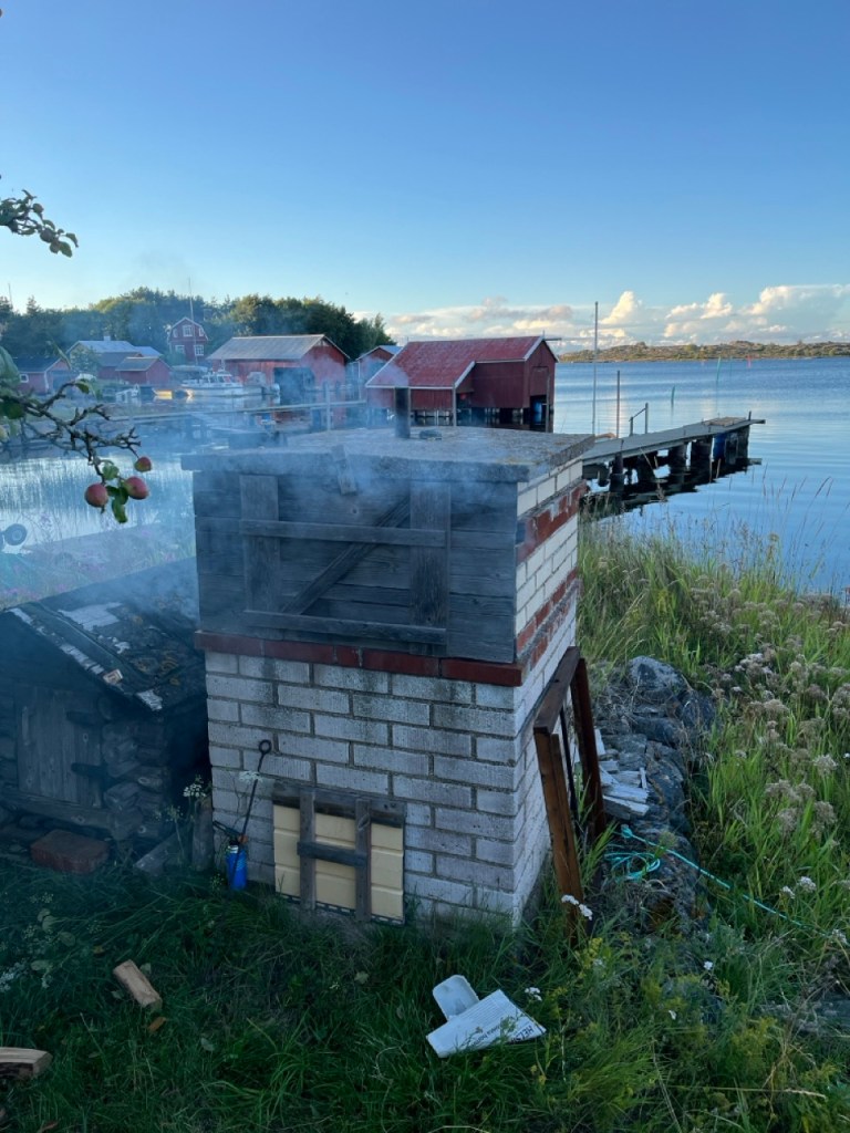 Illalla Timpalla oli savustusprojeksi. Heillä on sukujuhlat ja sitä varten piti saada kalaa tehtyä. Menin uteliaisuuttani katsomaan, miten täällä saaristossa homma hoidetaan.