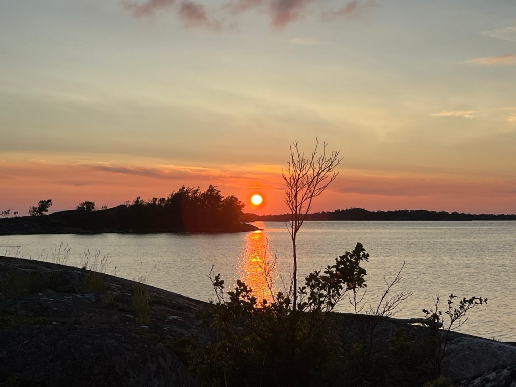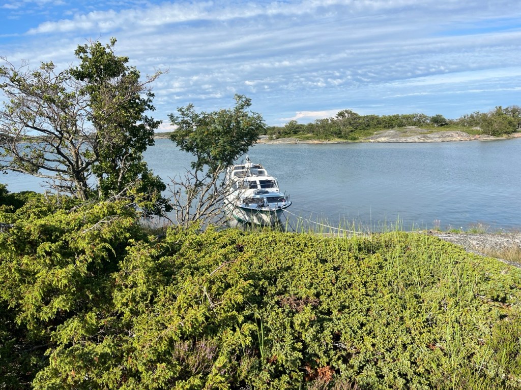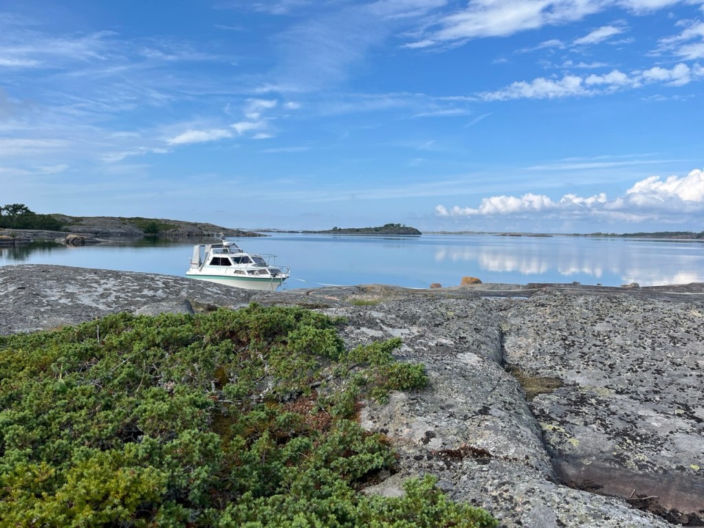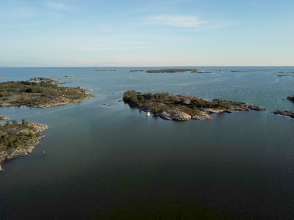 Päätimme vaihtaa maisemaa. Menimme katsastamaan pari mailia pohjoisempana olevaa Österön saarta, mutta ei onnistunut rantautuminen. Tai kyllä olisi, mutta niin jyrkät kalliot, ettei olisi päässyt saareen kunnolla. Siispä takasin lähtösaareen, mutta nyt sen pohjoiskärkeä ihmettelemään. Ei onnistunut sielläkään. Paikka mihin muuten olisi voinut mennä, olikin aivan rannassa pään kokoisia kiviä.