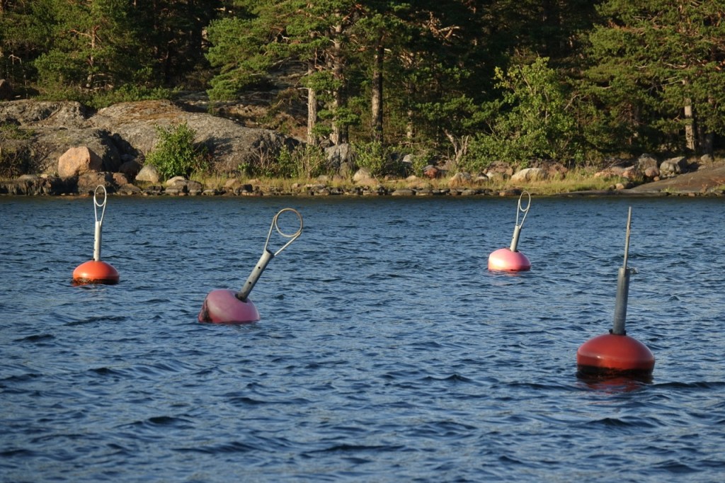 Tuohon tolppaan sitten köyden saa laitta ja ei kun keula laituriin. Ennen vanhaa melkein kaikissa oli vain tällaisia. Poijut tulivat yleisimmiksi vasta 80-luvulla. Ja täällä saaristomerellä vielä myöhemmin.