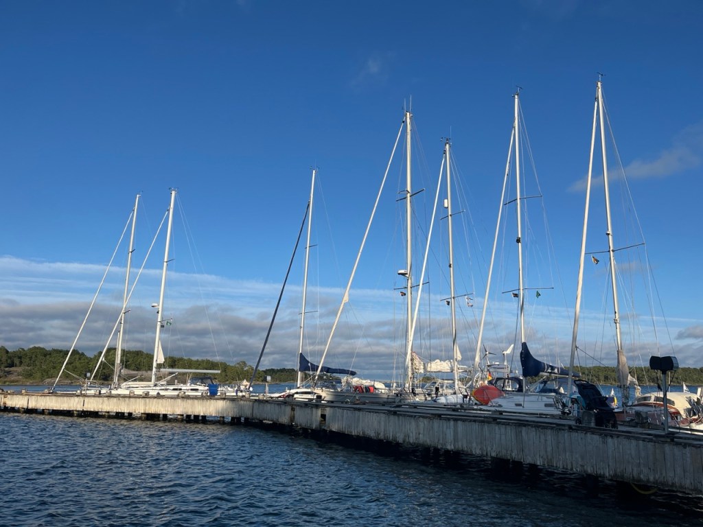 Aurinko teki laskuaan ja minä ihailemaan maisemia. Aloitin kylläkin mastojen ihailusta. Sama määrä mastoja kuin eilen illalla. Ai niin. Olemme ainut moottorivene tässä satamassa. Muutenkin olemme ”vähemmistöä” näissä meille kaukaisissa paikoissa.