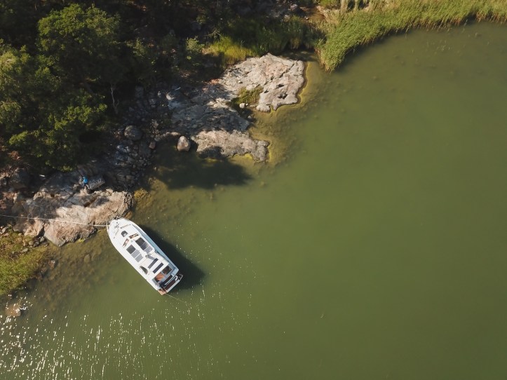 Alun perin meidän piti rantautua viereiseen Hauluoto-saareen, mutta kun pikkaisen ripotteli vettä, emme uskaltaneet. Suuri vaara joutua kallion ja veneen väliin. Olemme olleet joskus tässä saaressa ja siksi tulimme nyt tutkailemaan paikkaa. En kylläkään muistanut paikasta mitään.