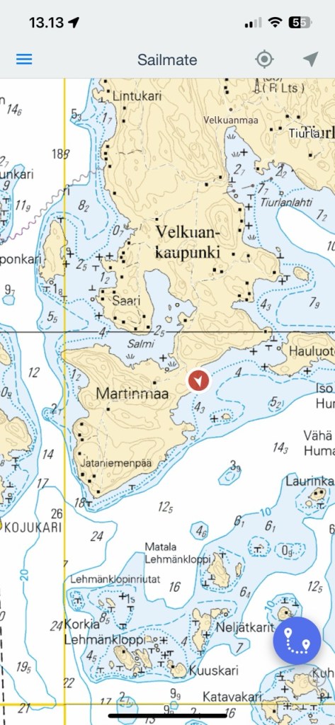Iniöstä itään muutama maili on partiolaisten merkitsemä Skatan retkeilysaari. Se paikka mihin tuuli ei käynyt, ei käynyt meille. Pään kokoisia kiviä rannassa, joten kuttaperkaveneemme ei tykkää sellaisesta. Hylkäsimme kohteen ja jatkoimme matkaa koilliseen.