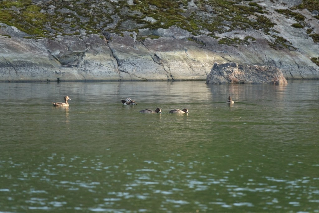 Lintuja pyöri useampaakin otteeseen aika lähellä meitä. Välillä ilmeisesti oli lentoon lähtö harjoituksiakin, kun yrittivät puolittain juosten ja samalla siipiään räpytellen edetä vauhdilla veden pinnalla. Vahinko etten saanut siitä operaatiosta kuvaa.