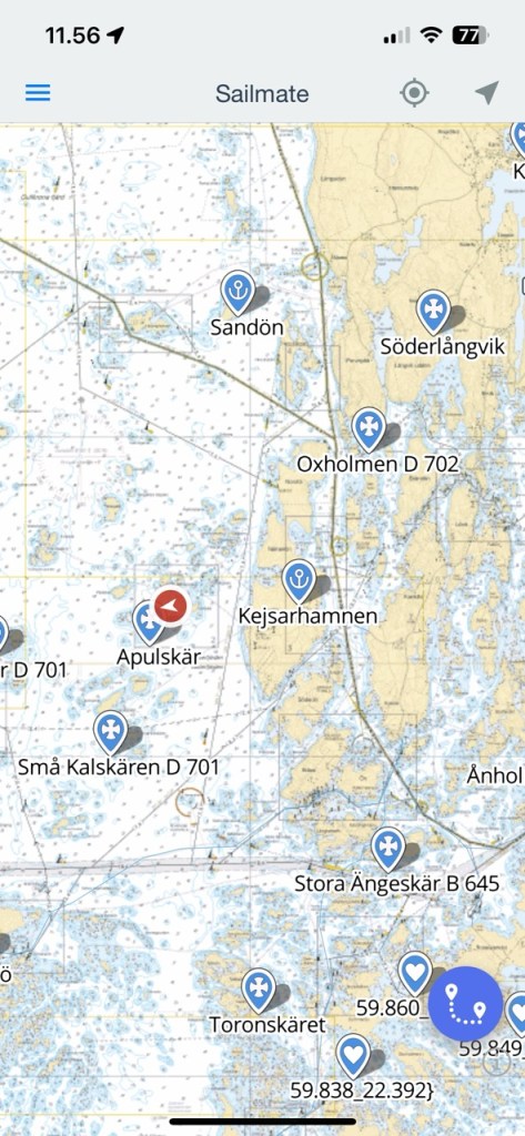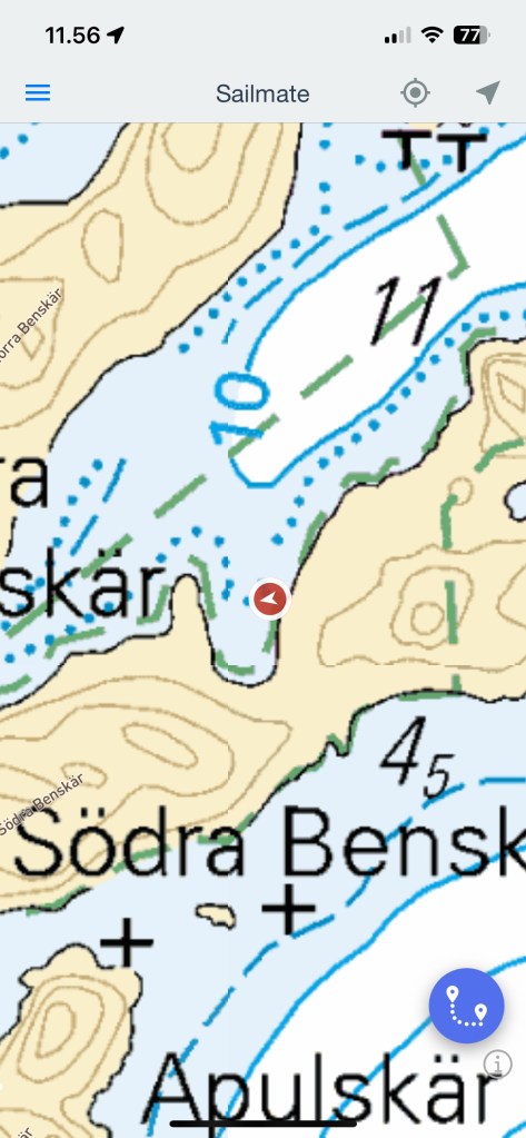 Koska ylihuomenna on rajumpaa keliä, tulimme jo lähemmäksi seuraavaa kohdetta, jota arvomme vielä. Olemme olleet täällä parikin kertaa vuosien saatossa ja tiesin siten tämän olevan kiva ja suojainen paikka. ensin ajoimme melkeinpä tämän kahden saaren muodostaman lahden pohjukkaan, mutta muistikuvani olivat väärät. En löytänyt sitä hyvää paikkaa.