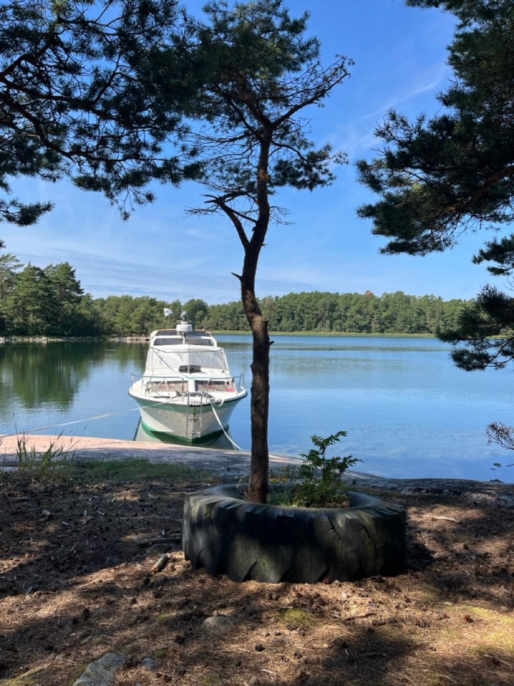 Aika erikoista, että joku on raahannut ison renkaan tänne. Täyttänyt sen maalla ja tiedä vaikka istuttanut tämän männyn siihen. Nyt oli saanut pihlajankin kaveriksi, niin ei ihan yksin tarvitse olla.