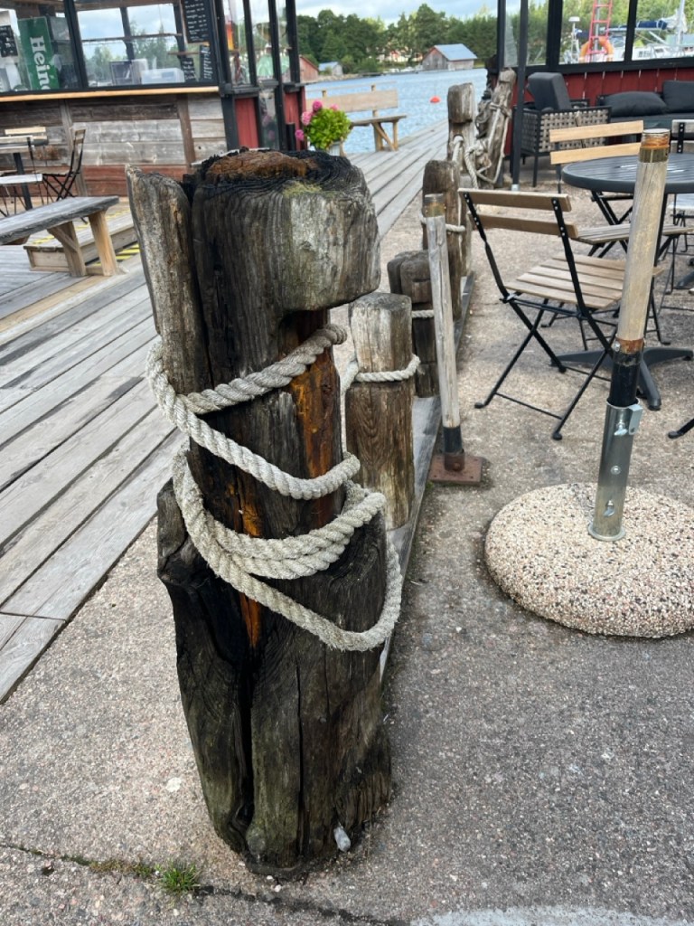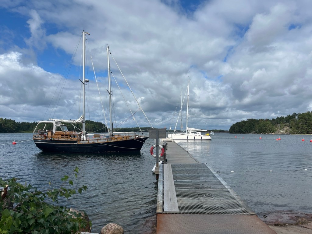 Yöllä satoi pariinkiin otteeseen rankasti. Vaikka olemme laiturissa ja tuulen alapuolella, nyki välillä jonkin verran. Mutta jostain syystä kun tietää, että olemme ”turvassa” eikä tarvitse pelätä irtoaako ankkuri tai kalliokiilat, nukuin olosuhteisiin nähden hyvin 😉