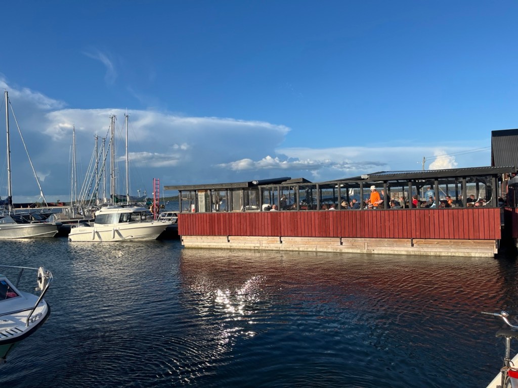 Illalla Rumpan baarissa oli livemusiikkia ja kuppila lähes täynnä. Myös mökkiläiset olivat tulleet veneillään tapahtumaan. Hyvä että tulevat. Näin palvelut säilyvät, kun niitä käytetään.