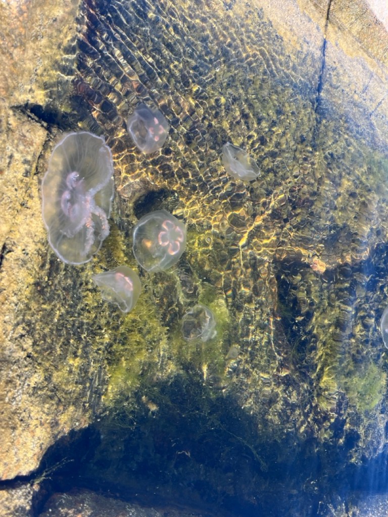 Alakuvassa oli sitten kuolleita meduusoja paljon. Ilmeisesti aallot tuoneet ne tähän lätäkköön ja menehtyneet siihen.