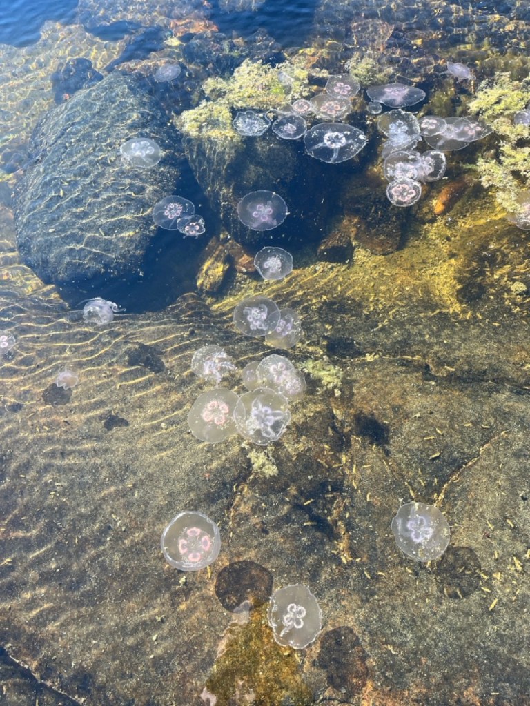 Täällä oli jo meduusoja paljon. Muutama on nähty aikaisemmin, mutta ei näin paljon.