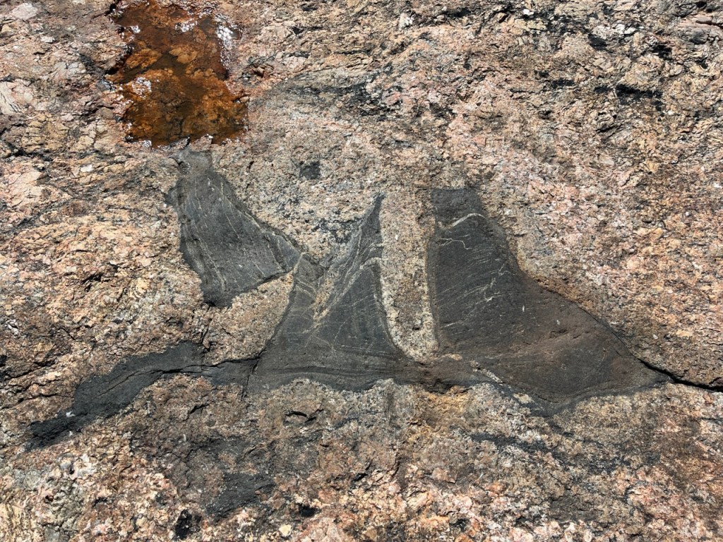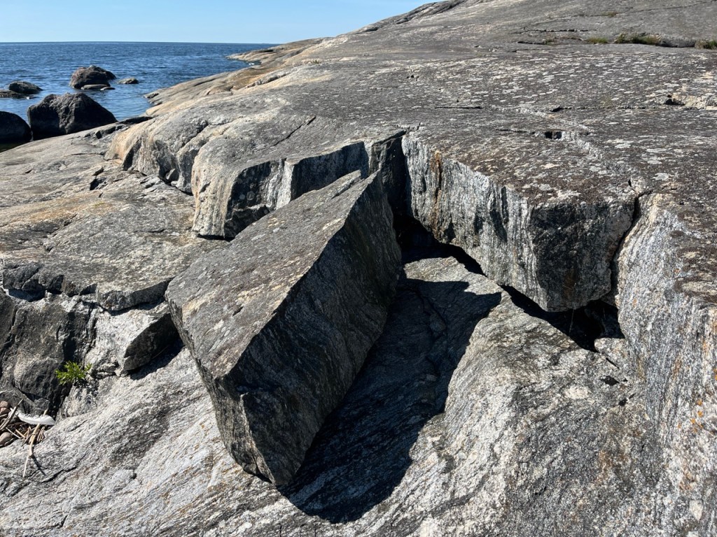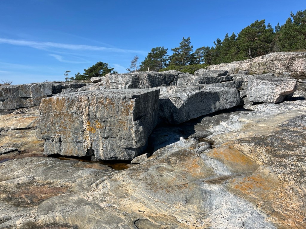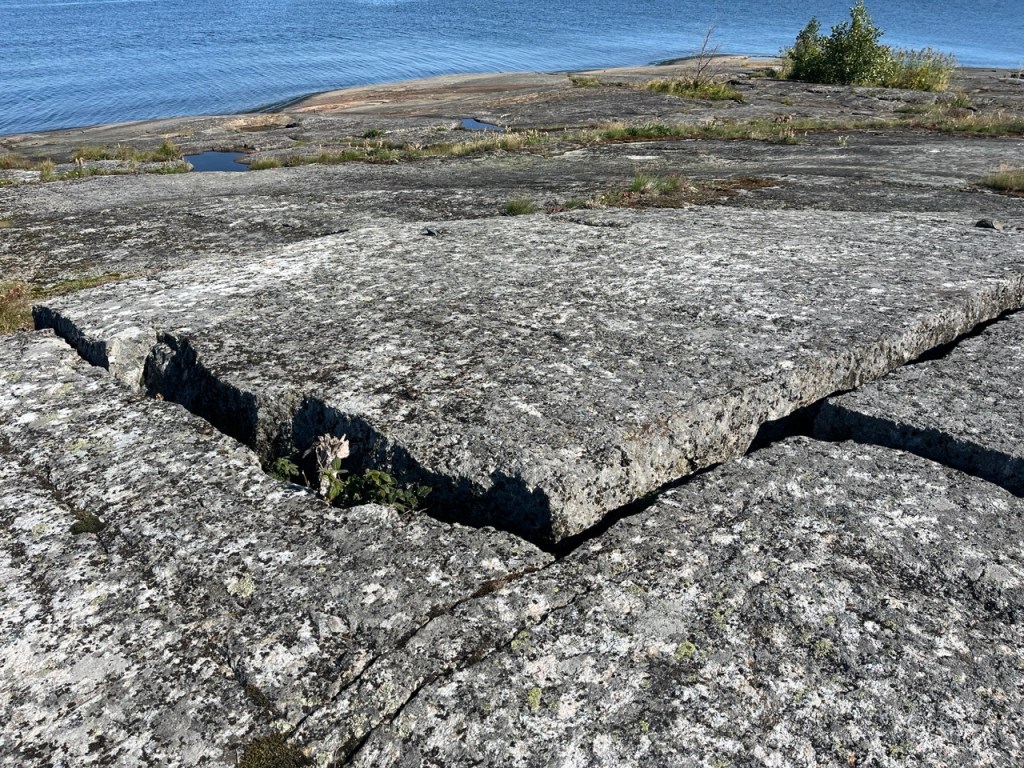 Aivan pohjoiskärjen tuntumassa eroosio irroittamassa isoja laattamaisia lohkareita.