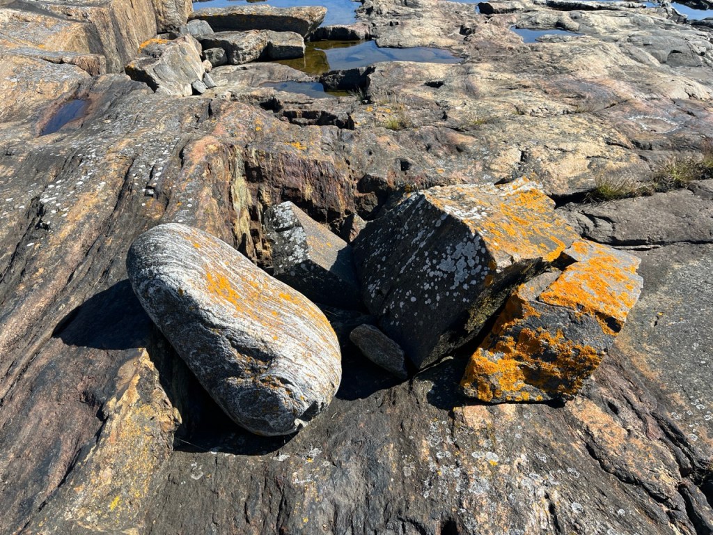 Mistä ihmeestä tuo pyöreä kivi on joutunut näiden kantikkaiden sekaan. On vieläpä ihan eri kiviainestakin.