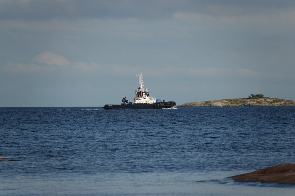 Laivaväylällä meni hinaaja jota kauempana ihmettelin, että mikä kummajainen on. Vasta tämä kuva selvitti kummajaisen.