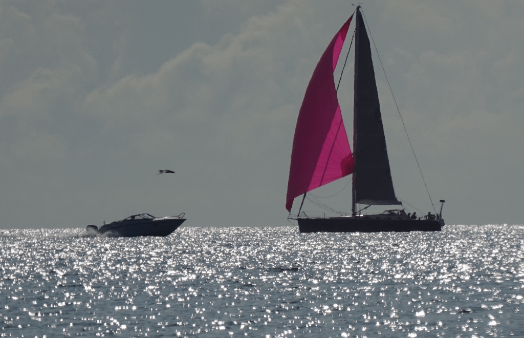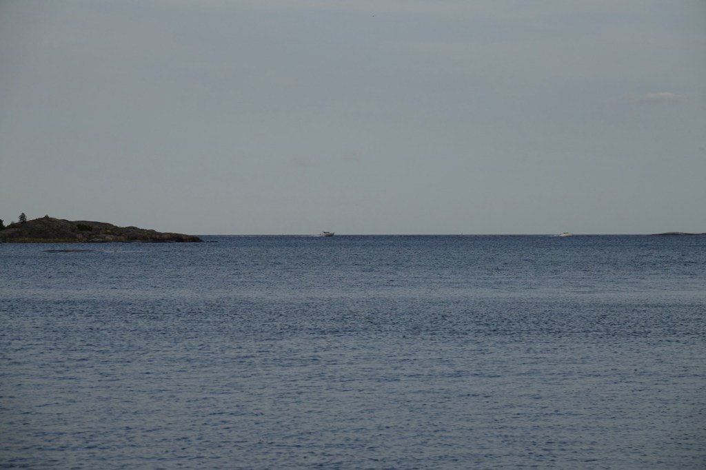Nyt selvisi yksi mysteeri. Kun olimme Andössä keskiviikkona 14.8. näin useamman moottoriveneen menevän perä jälkeen kohti Helsinkiä. No tänään klo 18:45 ne tulivat takasin länteen päin eli olivat varmaankin esittelyveneitä uivassa venenäyttelyssä Lauttasaaressa. Nyt menevät takaisin myyntipisteisiinsä. Joko Turkuun tai Uuteenkaupunkiin. Alakuvassa vähän huonosti näkyy, kun ei mahtunut zoomattuna kuin kaksi venettä kuvaan. Jos olisin ottenut normipolttovälillä, ei näkyisi yhtään venettä. Matkaa kuitenkin veneisiin merimailin verran eli n kaksi kilometriä.