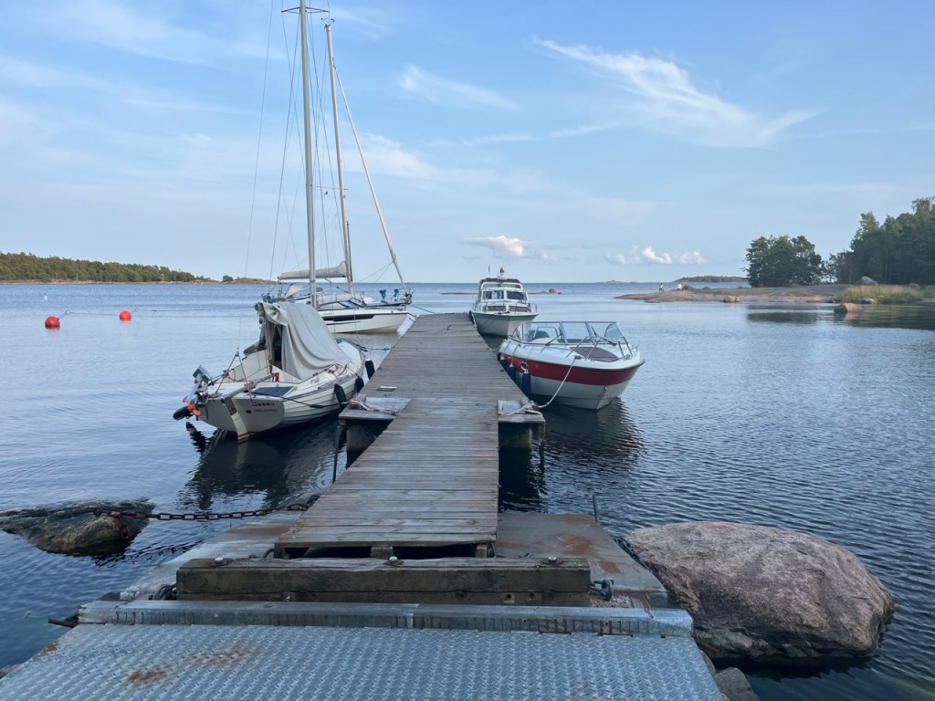 Lopulta meitä jäi enää kolme venekuntaa. Ja Sarza yksin edustaa uljaasti moottorivenekantaa kuten usein tänä kesänä laitureilla. Taisi olla jossain toistakymmentä venettä ja Sarza ainut moottorivene. Eikä ole illan kelissäkään valittamista. Mitä nyt väyläällä vähän puhaltaa.