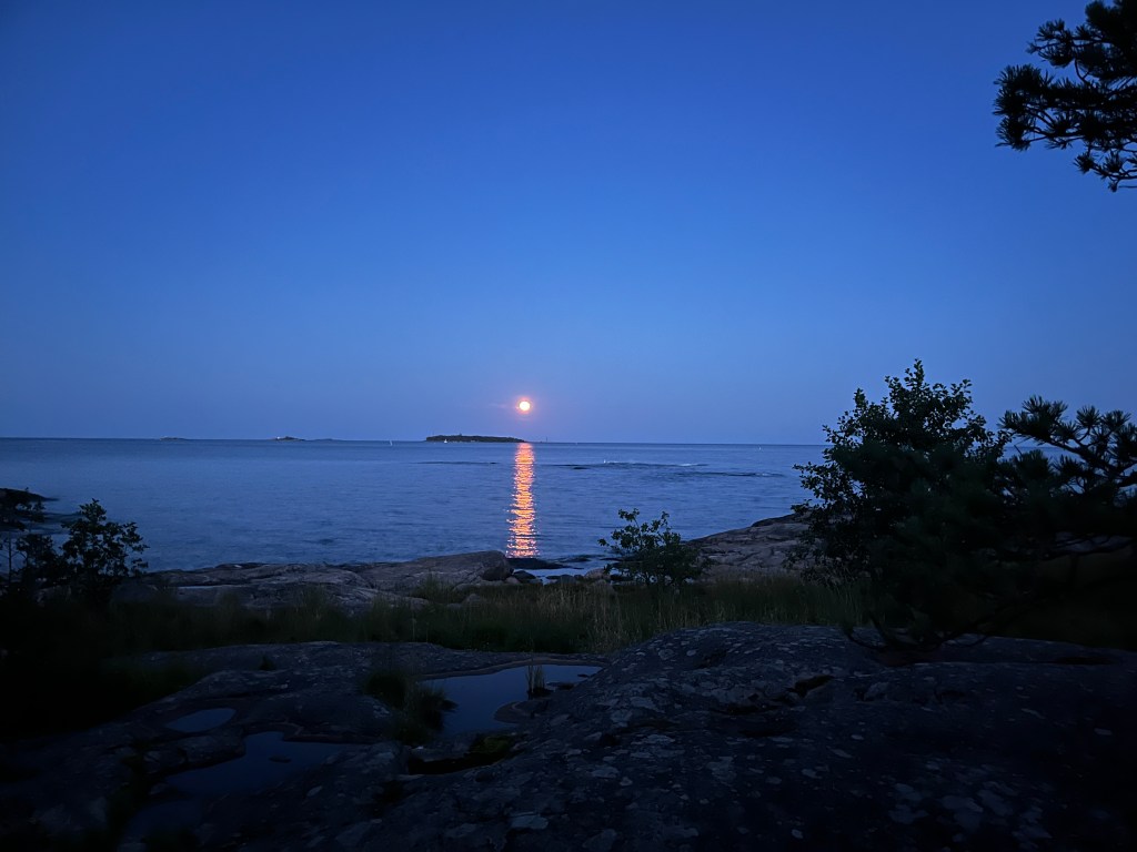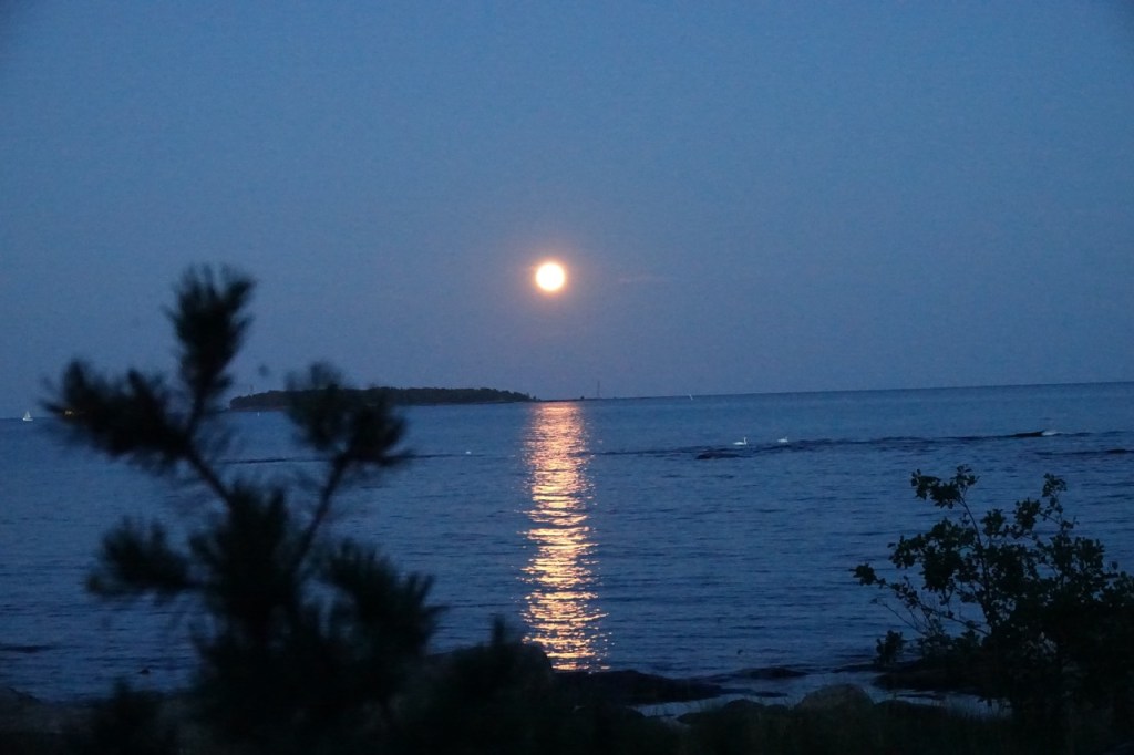 Koska tänään on superkuuilta, menimme Madamen kanssa mollukkaa ihastelemaan saaren itärannalle. Yleensä aina on pilvistä, kun on täysikuu, joten harvinaista herkkua merellä.