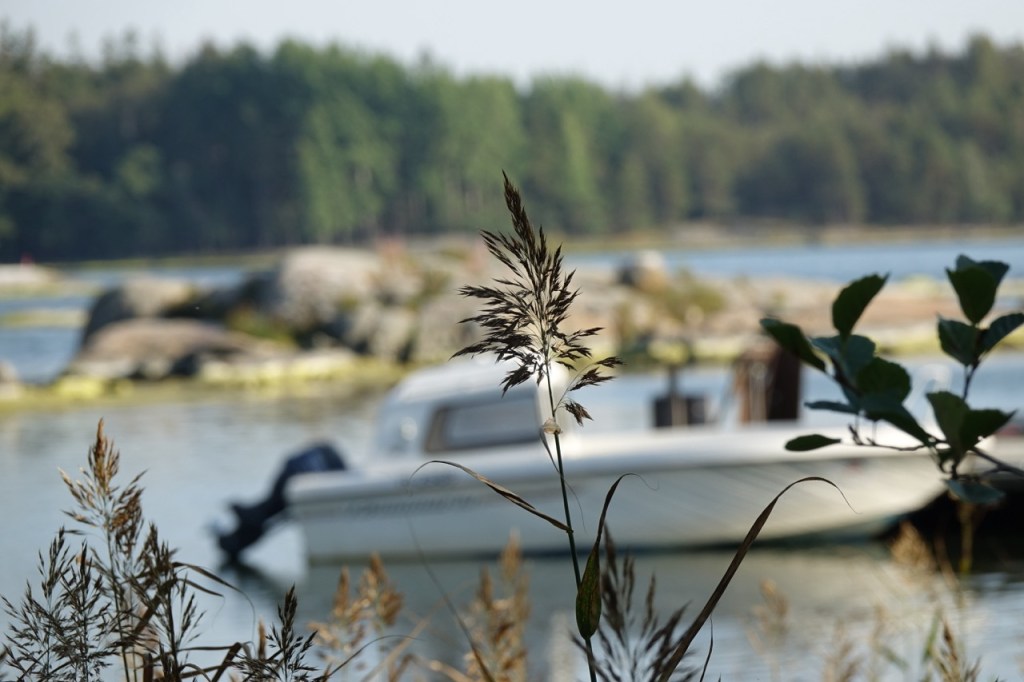 Tuolla veneellä henkilökunta käy Stora Svartöössä hoitamassa tehtäviään.