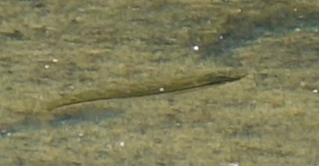 Oli sen verran kaukana tämä (oletettavasti) hauen poikanen, ettei oikein tarkkaa kuvaa saanut. Välkentivä ja eloisa veden pintakin asetti haasteen kuvaamiseen.