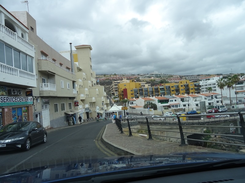 Täältä laskeuduimme ihmettelemään Puerto de Santiagoa. Vai pitäiskö sanoa Los Gigantes. Autoa emme saaneet mihinkään parkkiin, joten jatkoimme seuraavaan kohteeseen, Play de las Americas’iin. Tääläkään ei meinannut löytyä parkkipaikkaa. Mutta sitten hiffasimme Lidl’in parkkihallin, missä sai kaksi tuntia veloituksetta pitää autoa. Siispä aito sinne. Kävimme muutamassa putiikissa tuleksettomasti. Samaa krääsää saa omassa kaupungissakin.