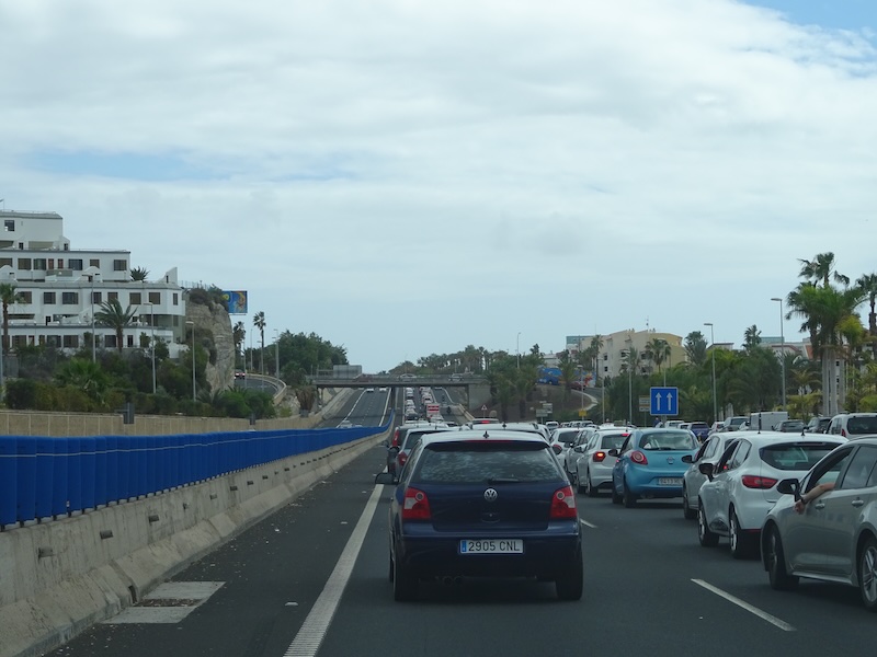 Moottoritietä pitki kotiin. päin ajaessamme, pohdimme, riittäkö aika poiketa La Lagunassa. Auto piti luovuttaa, joten ei riittäisi aika. Taas kirosin liikenneruuhkia. toisaalta, pääsehän La Lagunaan bussillakin.