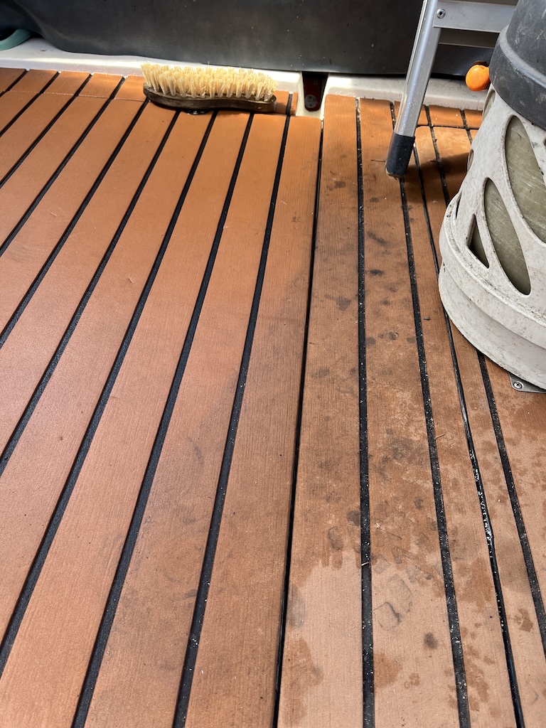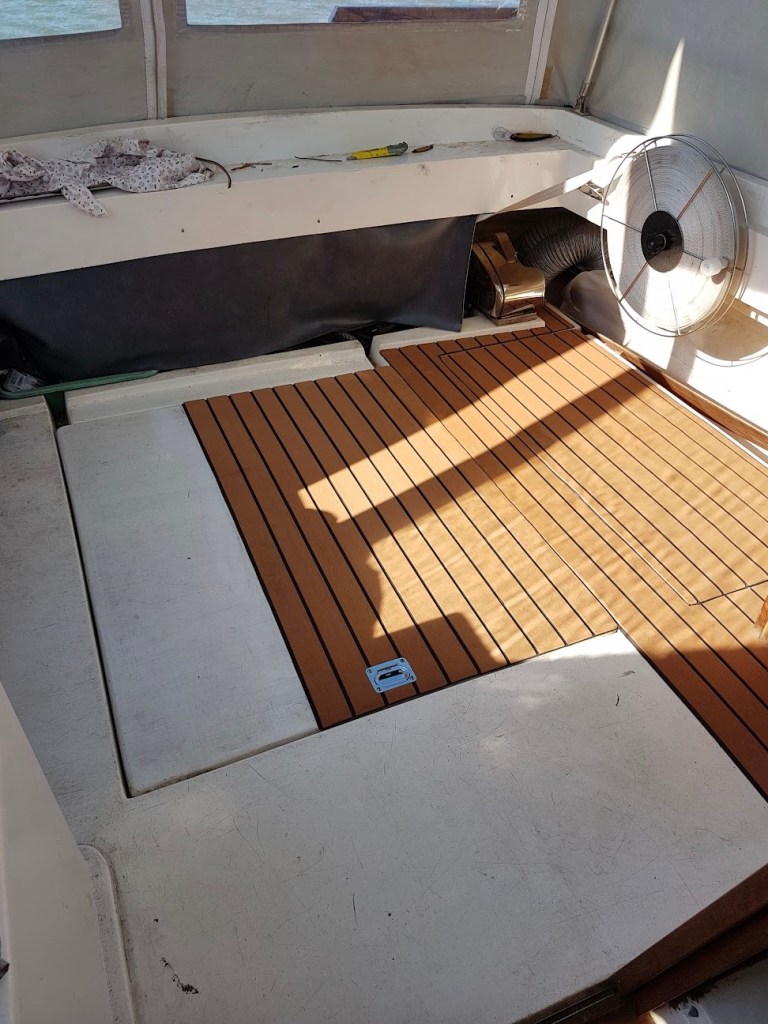 Tämä Evateak kestää yllättävän hyvin kulutusta. Olen asentanut tämän toukokuussa 2019. Vietämme veneessä keskimäärin yli sata päivää, kun päiväretketkin otetaan huomioon.