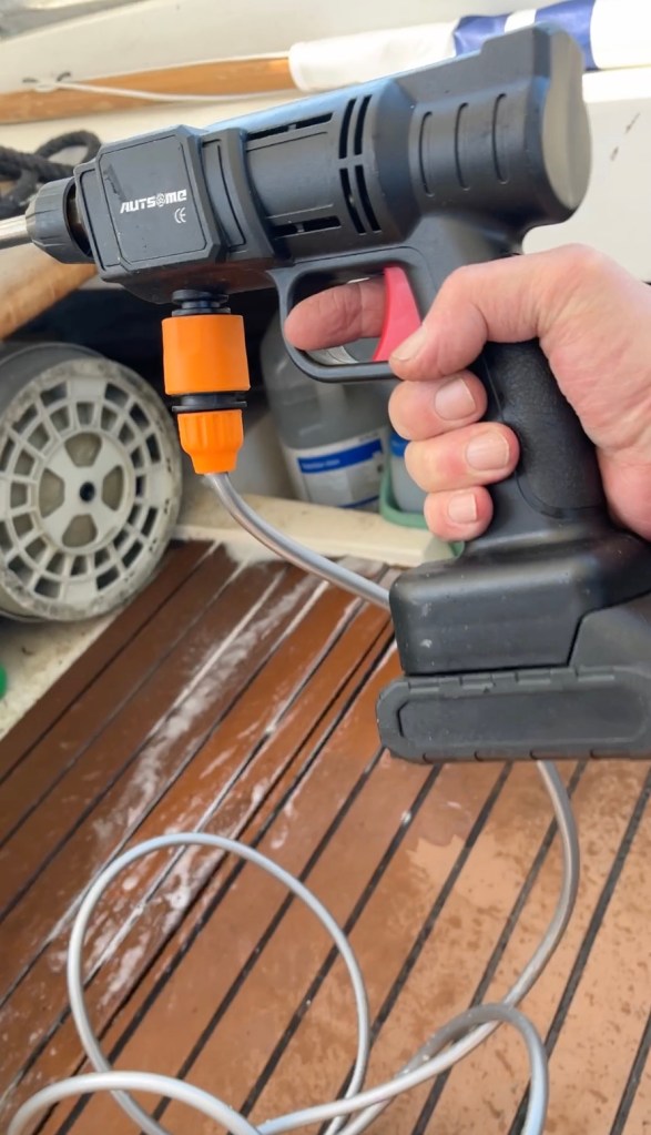 Olin tilannut marraskuun mustan perjantain tarjouksesta tämmöisen akulla toimivan painepesurin. Nyt se sitten joutui töihin.