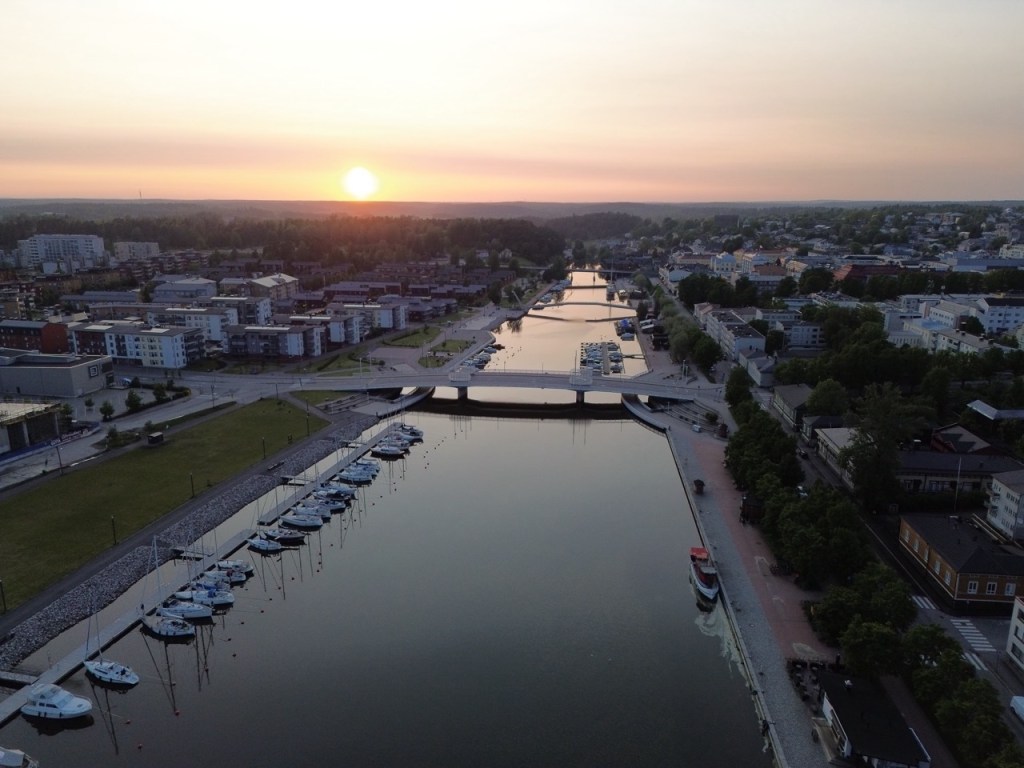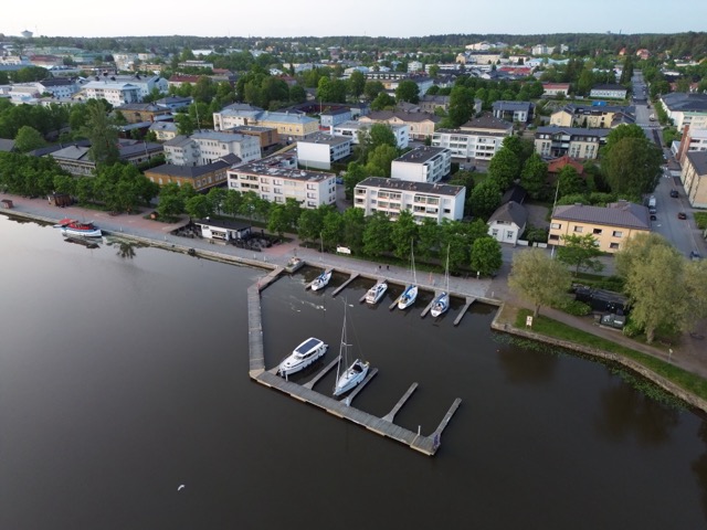 Merelle päin kuvatessa näkyy Porvoon joen uoma hyvin.
