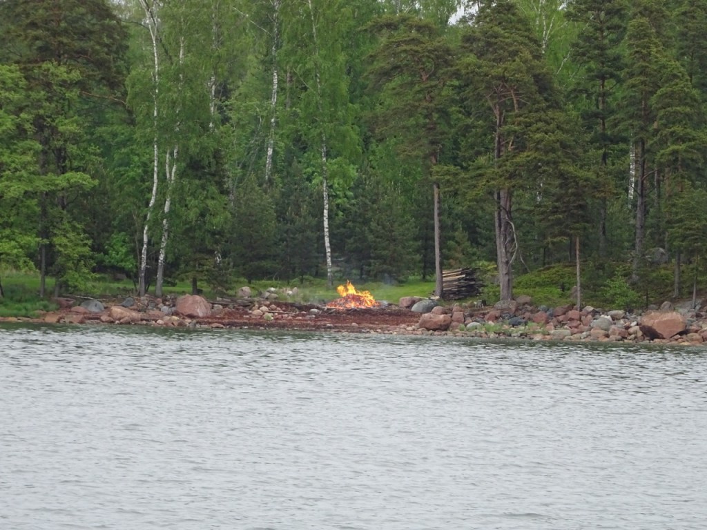Matkalla näimme mökkiläisen polttavan jo nyt kokkoa, olikohan kalenterissa mennyt päivät sekaisin 😉