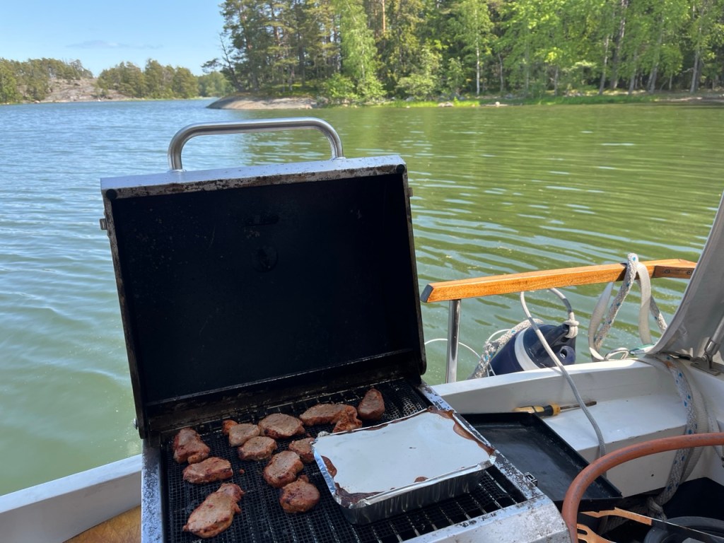 Tulipa avattua grillikausi. Yleensä olemme veneellä grillanneet useastikin jo toukokuun puolella, mutta tällä kertaa meni nyt näin myöhäiseksi.