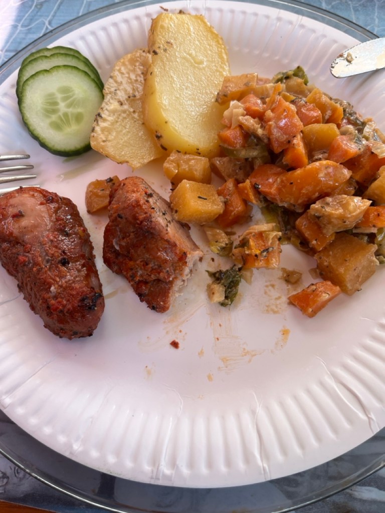 Possun sisäfilelttä ja uunijuureksia. Nam.