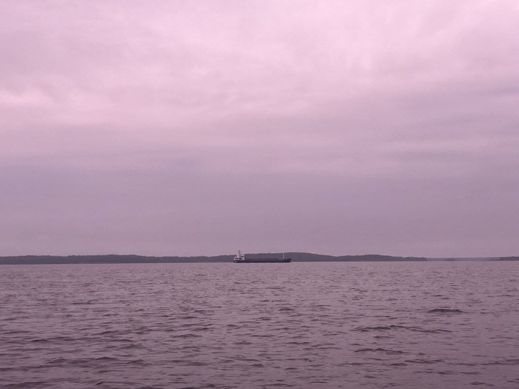 Rahtilaivan lisäksi näimme yhden purkkarin ja pari moottorivenettä liikenteessä. Rauhaisaa on liikenne merellä.