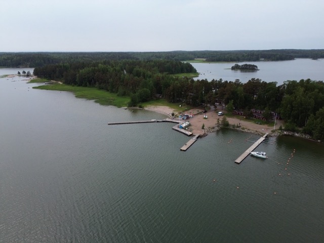 Piipahdimme ensin Bockhamnissa, mutta tämä vesisade oli tehnyt tietenkin rantakallion liukkaaksi, joten jatkoimme matkaa tänne Sandhamnsuddeniin Pellinkiin. Kun tulimme, oli yksi saksalainen purkkari laiturissa, mutta poistui hetken päästä. joten jäimme yksin.