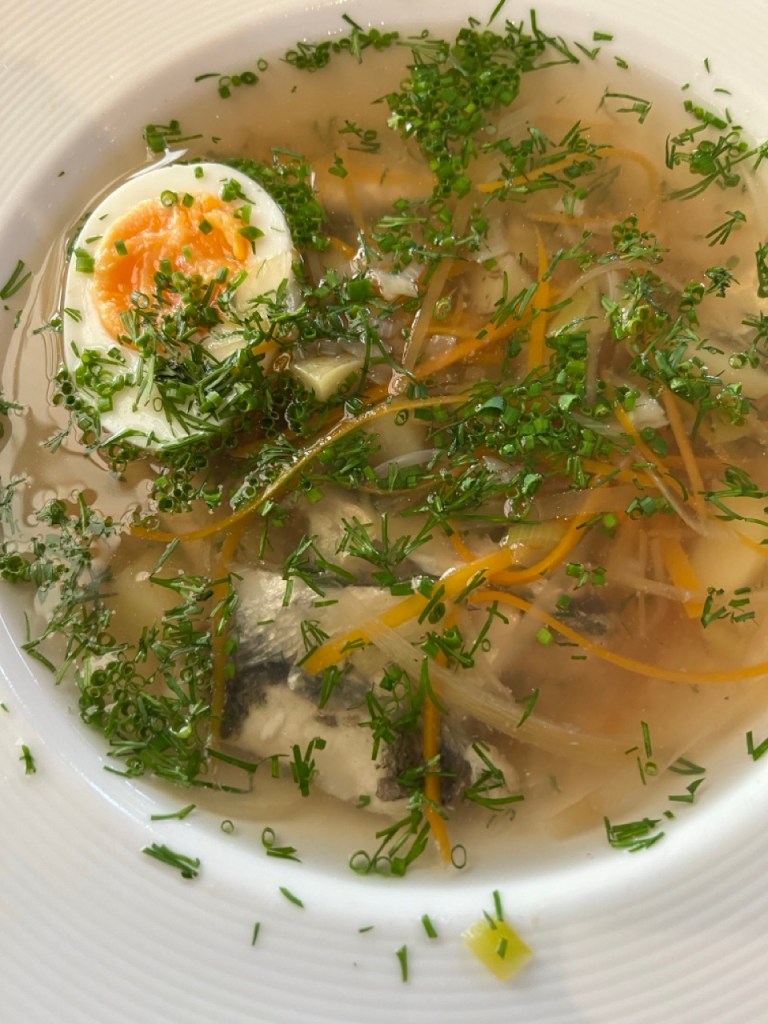 Otimme listalta keitot. Minulle kala- ja Madamelle rapukeitto.