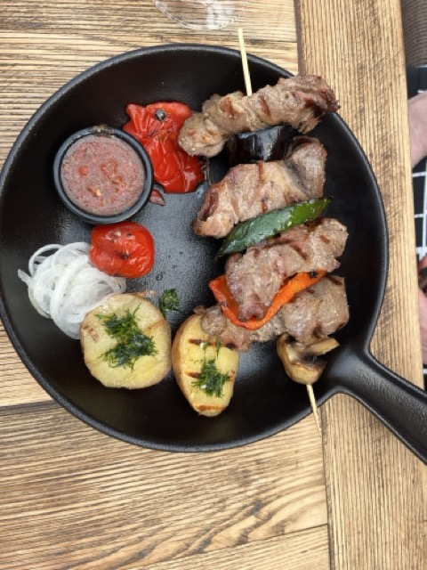 Saslik lampaasta oli vähän sitkasta, muuten kylläkin hyvää. Nyky trendin mukaan erikoisemmin laitettu esille.