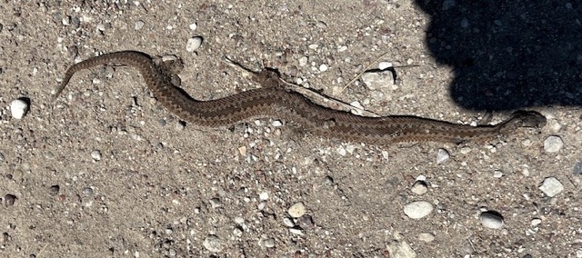 Takaisin tullessamme näimme kyyn poikasen. Valitettavasti oli jäänyt auton alle ja nyt hengetön.