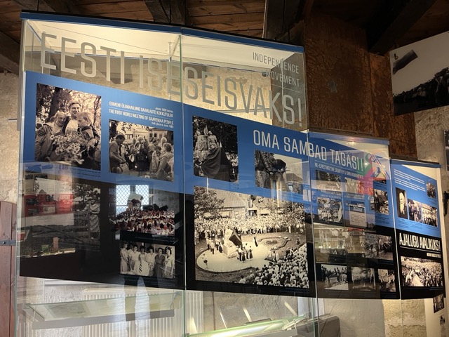 Jokaisessa kerroksessa oli pieni näyttely. Alimmassa entisaikoja. Neukkuajanhistoriaa yhdessä. Sitten olikin vuorossa Viron itsenäisyyden aika.