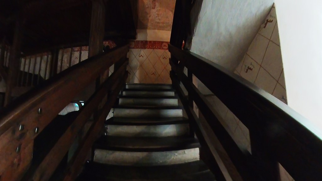 Jossain kohtiin oli aika kapeat portaat päästäkseen toiseen kerrokseen.