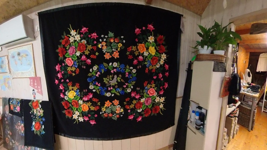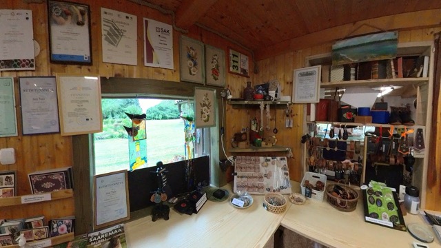 Seinällä oli lukuisia kunniakirjoja tästä palkitusta Sirje Tuur’sta. Myynnissä oli jos jonniinmoista käsin tehtyä tuotetta. Tuosta linkistä voit tilata tuotteita, jos ei paikan päälle eksy. https://www.mktb.ee/