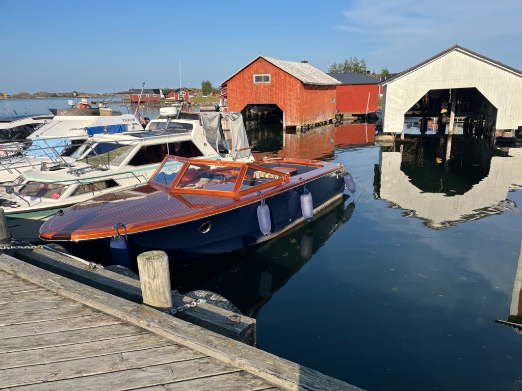Tämä vene olisi mahtunut aivan hyvin ilman meidän veneen siirtoa siihen väliin, mistä purkkari oli lähtenyt. Mutta se ei näköjään käynyt tälle huseerajalle. Ja olihan tämä sentään jonkun saarelaisen naapurin vene. Tai jostain naapurisaaresta tullut. Pitihän sille sitten järjestää paikka. Ja kävivät vain täällä muutaman tunnin. Me sentään pari yötä. Vähän jäi sylettämään tämän huseeraajan homma.