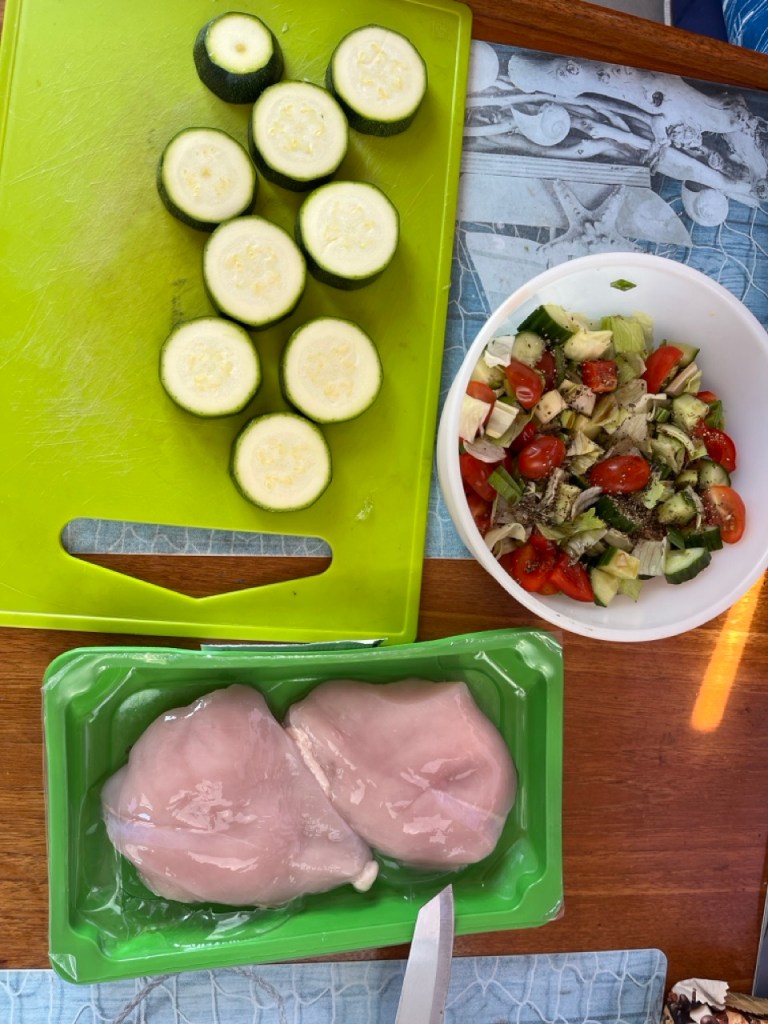 Pikästä aikaa tein grississä ruokaa. Broiskun rintaa kevyesti merisuolattu ja tsukkiinia kera salaatin. Kevyttä helteellä.