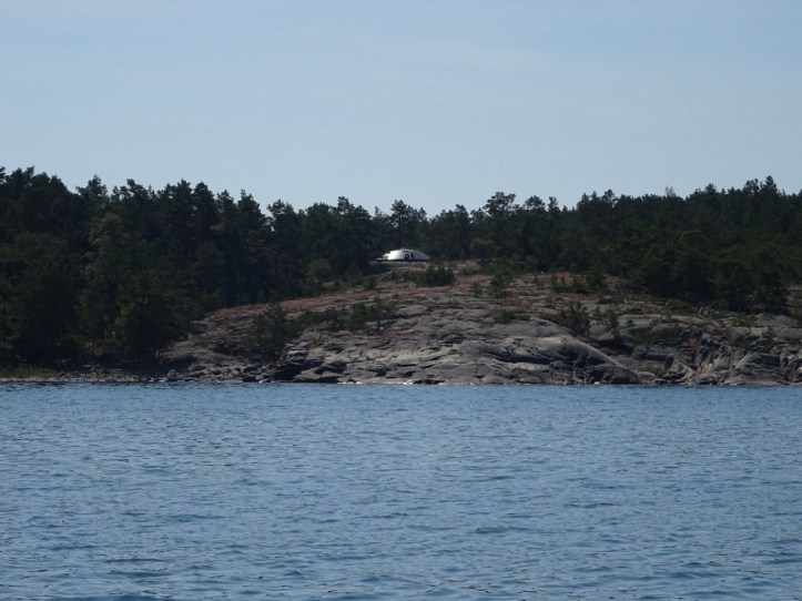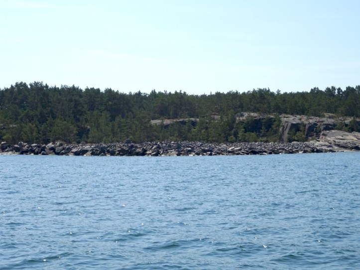 Katanpään niemeä lähestyessämme huomasin tykin. Kaukaa otettu kuva.