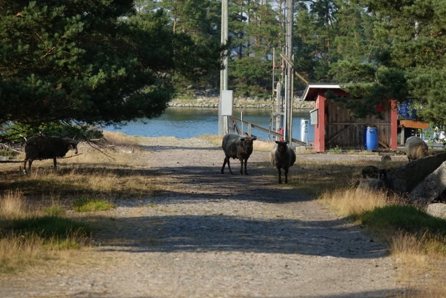 Saarella on lampaita. Monissa kohdin lappuja, joissa kielletään ruokkimasta niitä.