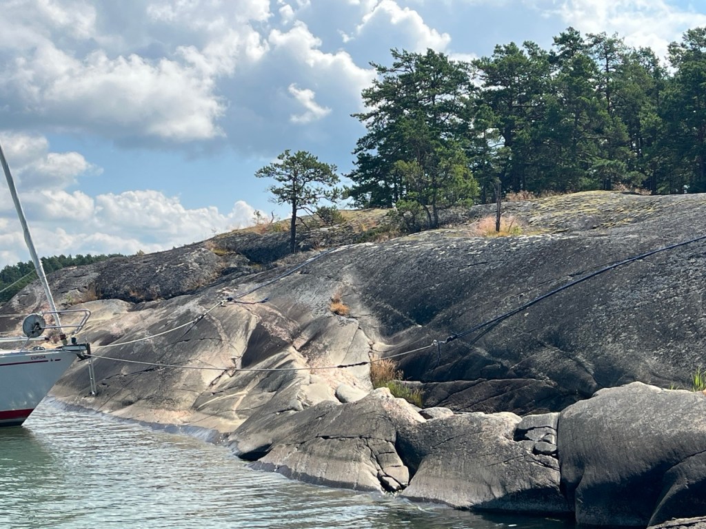 Täällä saaristossa kun liikkuu ja käy näissä saarissa, pitää kiinnittymiseen olla pitkät köydet. Aina ei saa kalliokiiloja paikoilleen tai ei viitsi niillä edes yrittää kiinnittyä.