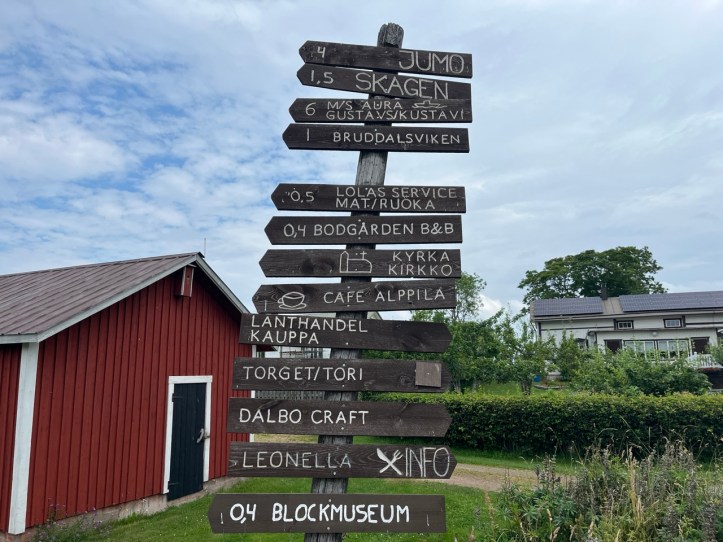 Jos ei tiedä, mihin saarella pitää mennä, on hyvät opasteet. Ja kerrankin selkeästi kuinka kaukana kohde sijaitsee.