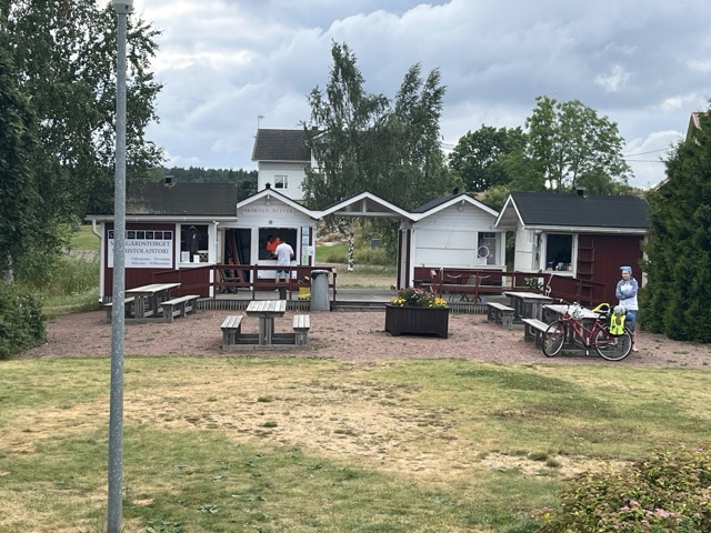 Saunan takana on ”tori”. Sen edessä muutamia kioskirakennuksia. Päivällä näkyi olevan asiakkaita aina kun ohi menimme.