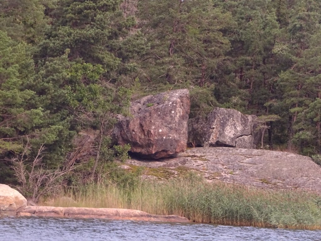 Vähän eteenpäin ja pari ”pientä” kiveä saaren rannassa. Noi oli varmaan kolme-neljä metriä korkeita.