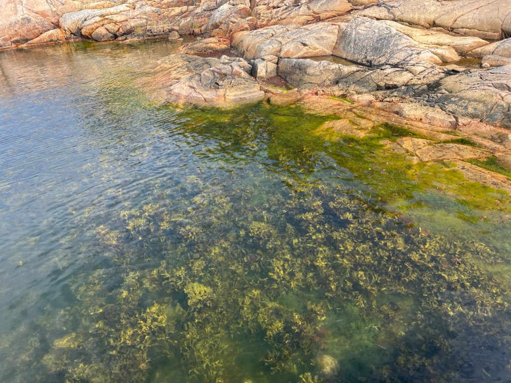 Rakkolevä voi hyvin ja vesi on kristallin kirkasta. 23 asteista on merivesi.