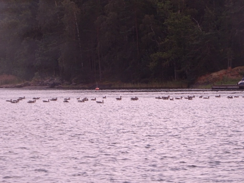Luulin ensin, että ovat merimetsoja, mutta kun suurensin kuvaa myöhemmin, huomasin niiden olevan hanhia. Eikä mitään valkoposkihanhia.