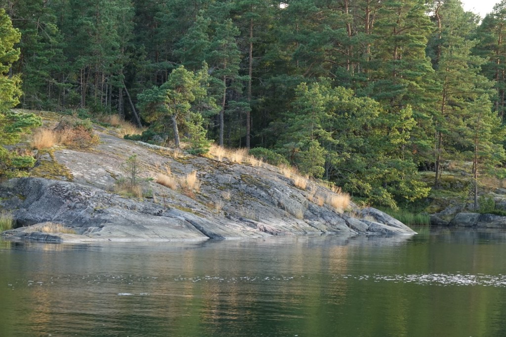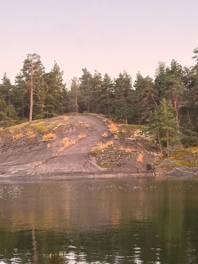 Eilen illalla vastakkaiseen kallioon auringon säteet ja kuivuneet heinät loistivat. Valitettavasti kuva ei kerro oikeaa näkymää.